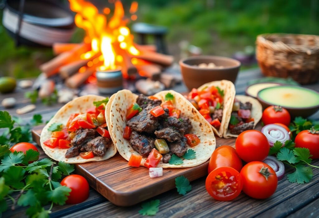 To cook your beef, set your campfire to a steady heat. If you have a grill grate, position it over the blaze to create a perfect cooking surface. Place your seasoned ground beef in a cast-iron skillet or a durable camping pot and cook at around 400°F for 10-12 minutes, stirring occasionally until the beef is browned and fully cooked. The richness of the beef, combined with the spices, will yield a hearty filling for your tacos.